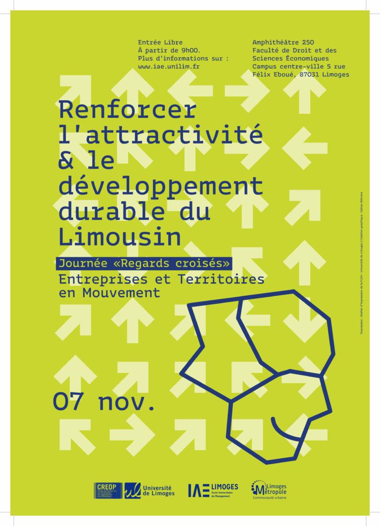 Renforcer l’attractivité et le développement durable du Limousin L’IAE Limoges et le laboratoire CREOP invitent l’ensemble des partenaires économiques, institutionnels et associatifs à une journée